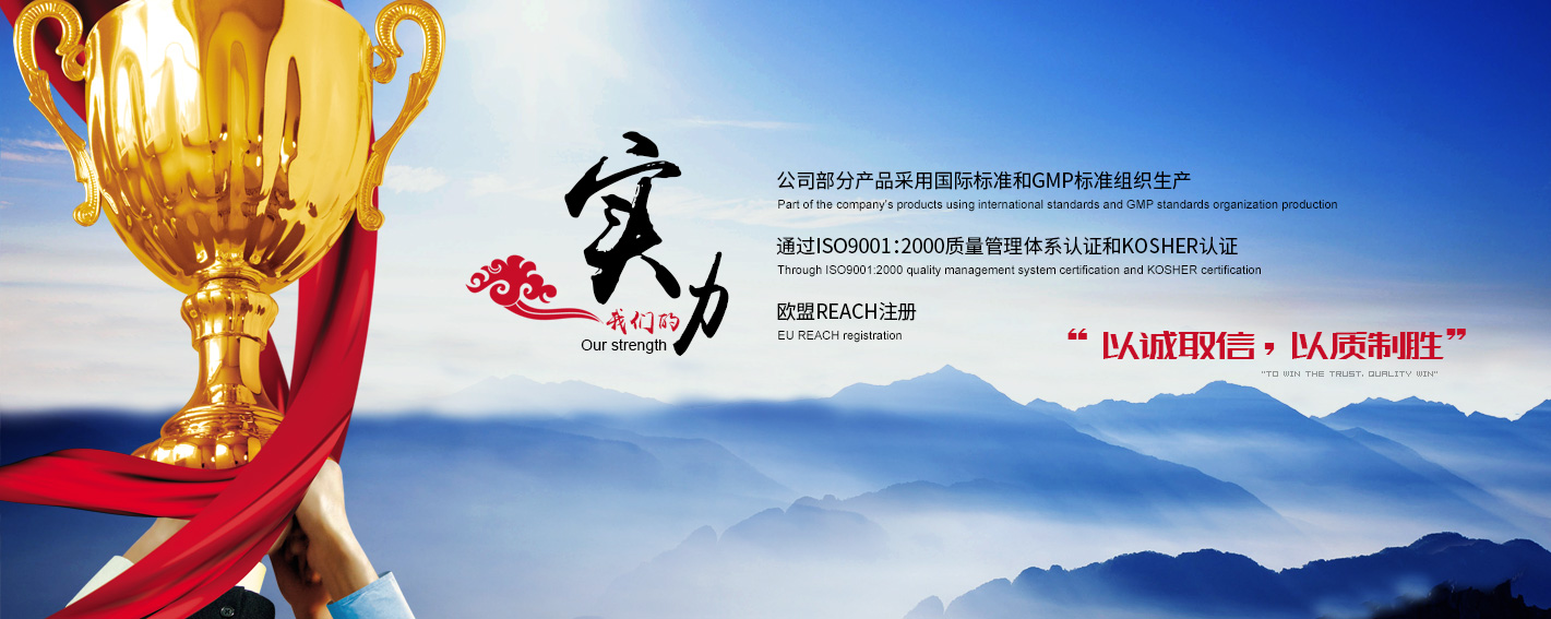 公司擁有現(xiàn)代化廠房、車間和物流倉(cāng)儲(chǔ)設(shè)施,配有先進(jìn)的生產(chǎn)設(shè)備及檢測(cè)儀器。公司部分產(chǎn)品采用國(guó)際標(biāo)準(zhǔn)和GMP標(biāo)準(zhǔn)組織生產(chǎn),并通過(guò)ISO9001:2000質(zhì)量管理體系認(rèn)證,歐盟REACH注冊(cè)。